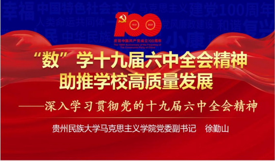 本次宣讲以《“数”学十九届六中全会精神,助推学校高质量发展》为题,从数字展开来看十九届六中全会,介绍了习近平新时代中国特色社会主义思想的十个“明确”、十八大以来的历史性成就和历史性变革的十三个方面,以及《决议》中所讲到的五大历史意义、十个“坚持”等内容。