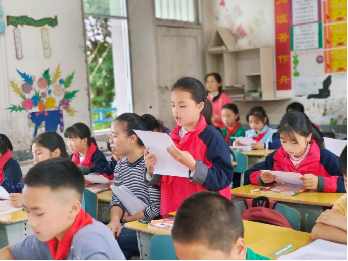 韩洪雷老师正在报京乡中心小学五(2)班讲课 邰昌元 摄
