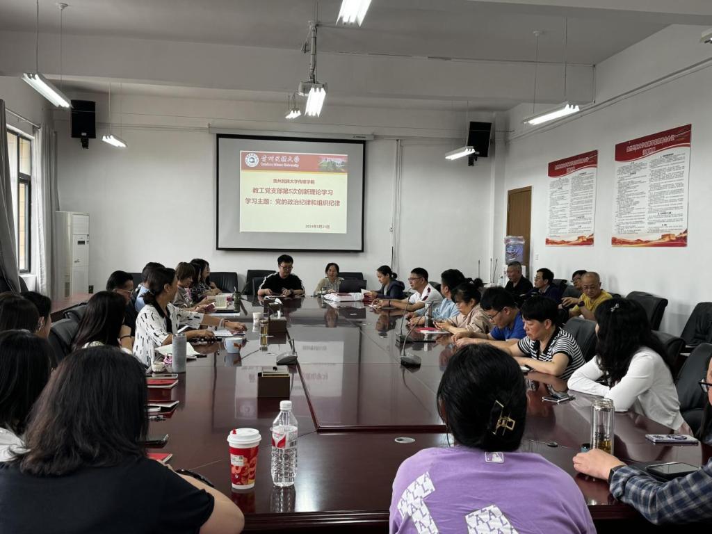 教工党支部于2024年5月31日下午在学院四楼会议室举行了党纪学习教育集中研讨会。此次研讨会聚焦于“党的政治纪律和组织纪律”的深入学习和交流研讨。教工党支部全体党员参加会议,校党委副书记杨声国出席会议,会议由教工党支部书记欧继花主持。