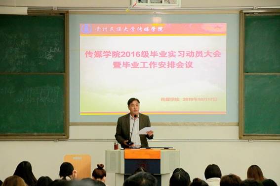 院长兰东兴和娄莉副书记分别作动员讲话。兰东兴院长表示:希望同学们高度重视毕业实习,在实习过程中积极努力,认真工作,珍惜机会,展现出民大传媒学子的风采。