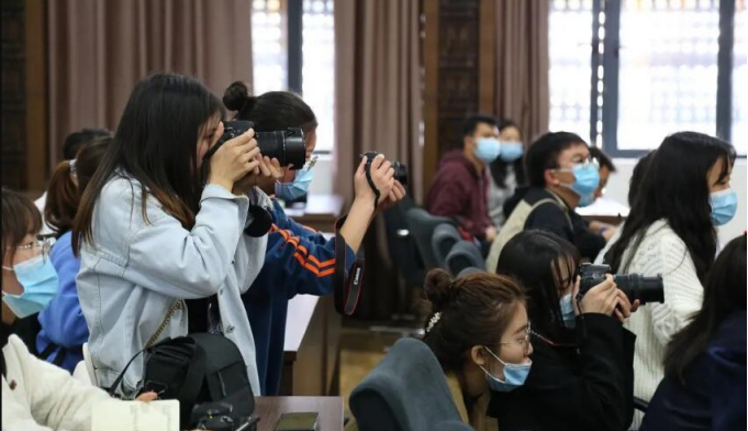 据了解,本学期两个班级均由管倩老师授课,2018级新闻实验班授课科目为《新闻报道策划》,2019级新闻实验班为《新闻采访与写作》。因此,两个班的实践任务安排各有不同:大三学生分为六个小组,每个小组需要完成不同主题的专题报道;大二学生报道内容自选,主要进行新闻采访和写作的实战。“记者”们根据选题需要,在博物馆内进行“信息大搜索”,馆内随处可见学生们的身影,他们观察、采访、记录、拍摄……