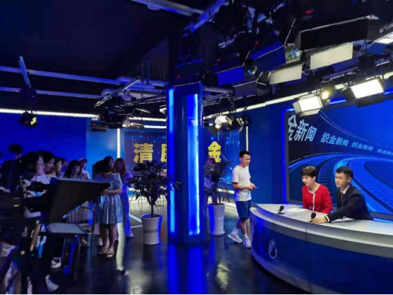 在抵达织金后,在织金县融媒体中心电视部主任张亮带领下,全体学生分批次参观了当地融媒体中心全景演播室、视频制作室、新媒体部办公室和新闻“中央厨房”等工作场所,近距离接触媒体工作环境,多角度了解电视新闻策划、采编、制作和播出流程。在演播室,实践学生在工作人员指导下,化身“主播”,亲身体验了电视新闻主持人的工作。
