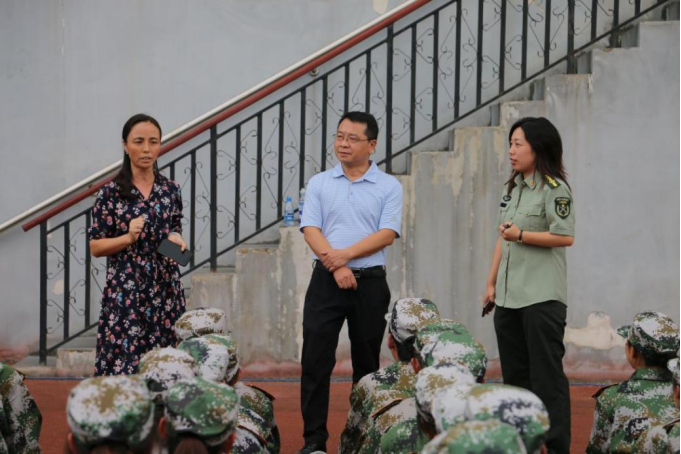 领导老师到达军训场地后,对军训的情况进行询问,吕映红书记与同学们亲切交谈,了解他们多姿多彩的军训生活,并嘱咐大家要注意个人安全,保持良好的身体状态,克服困难,努力提高意志品质。院团委学生会干部向军训学生分发饮品,对大家表示鼓励和慰问。
