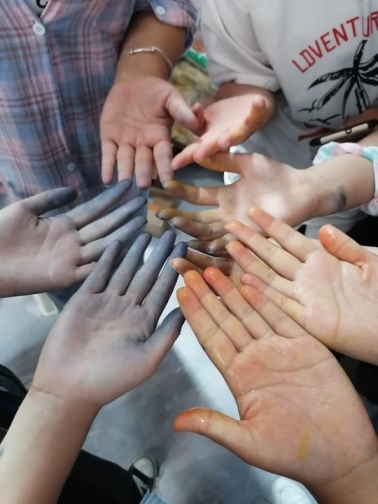 同学们被染色的手