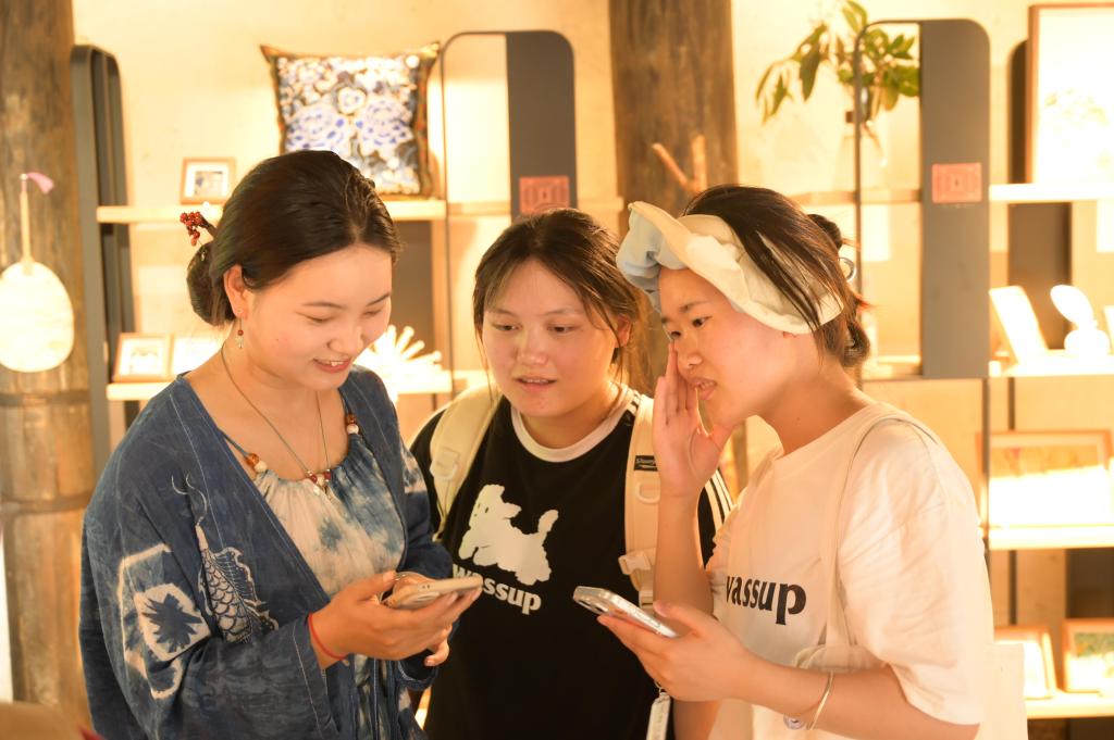 贞丰古城原为当地布依族先民集镇,其历史可追溯至汉代之前。古城内有几百年历史的古建院落,不仅保持原有的古朴风貌,还被赋予了新的功能——社区图书馆、青年艺术空间、露天电影院等,成为连接过去与未来的桥梁。在古城创业的几位00后非遗传承人在研习国家级非遗小屯皮纸、贵州省级非遗窑上村土陶等传统技艺的同时,设计制作出新潮的文创产品,深受市民与游客青睐。学生们就“青年参与布依文化的具身行动与习俗延续”等话题,与贞丰古城管委会负责人、非遗传承人、古城居民进行交流,共同探讨如何更好地打造“学习成长型共益社区”。