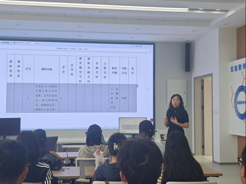 见面会伊始,系主任黄丽娜老师细致阐述了人才培养方案、专业培养目标及课程设置等情况,并鼓励同学们积极参与学院活动与专业竞赛,紧跟学术前沿,对接行业需求,珍惜大学时光,无悔个人选择。
