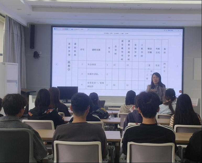 网络与新媒体系系主任黄丽娜教授正在解读人才培养方案