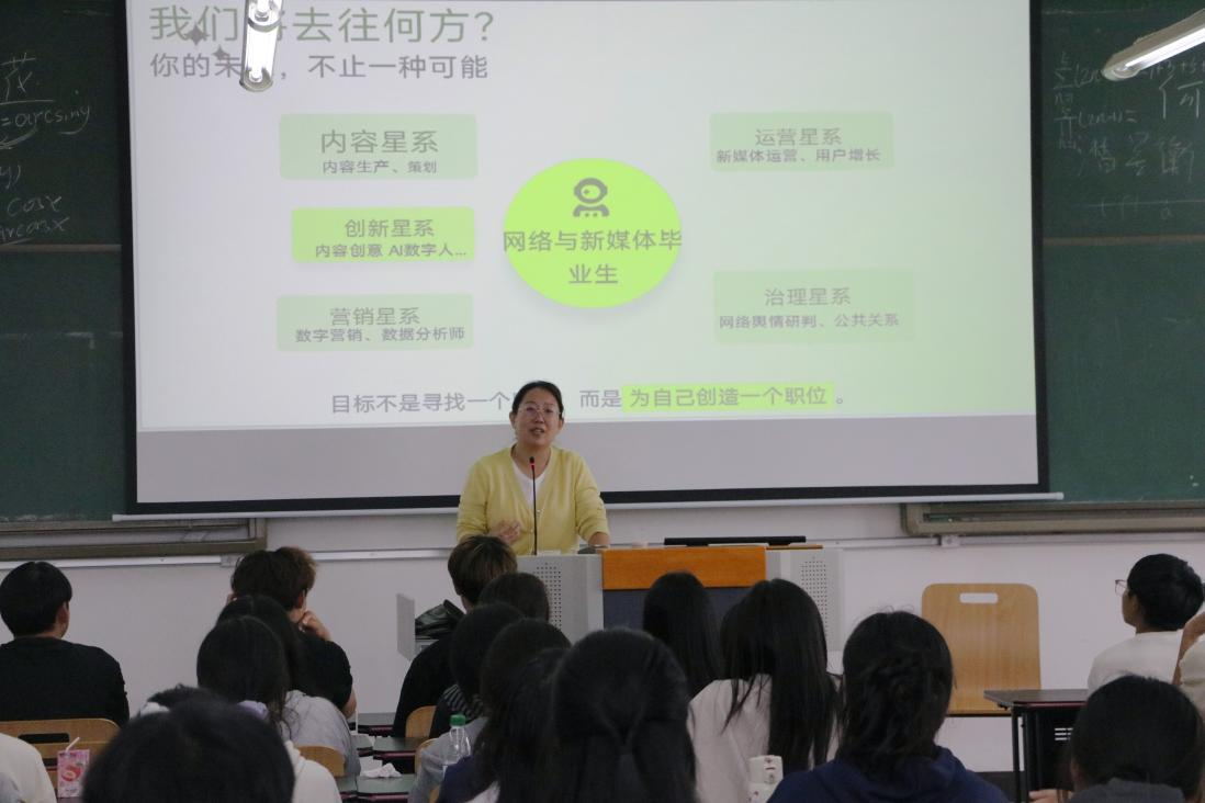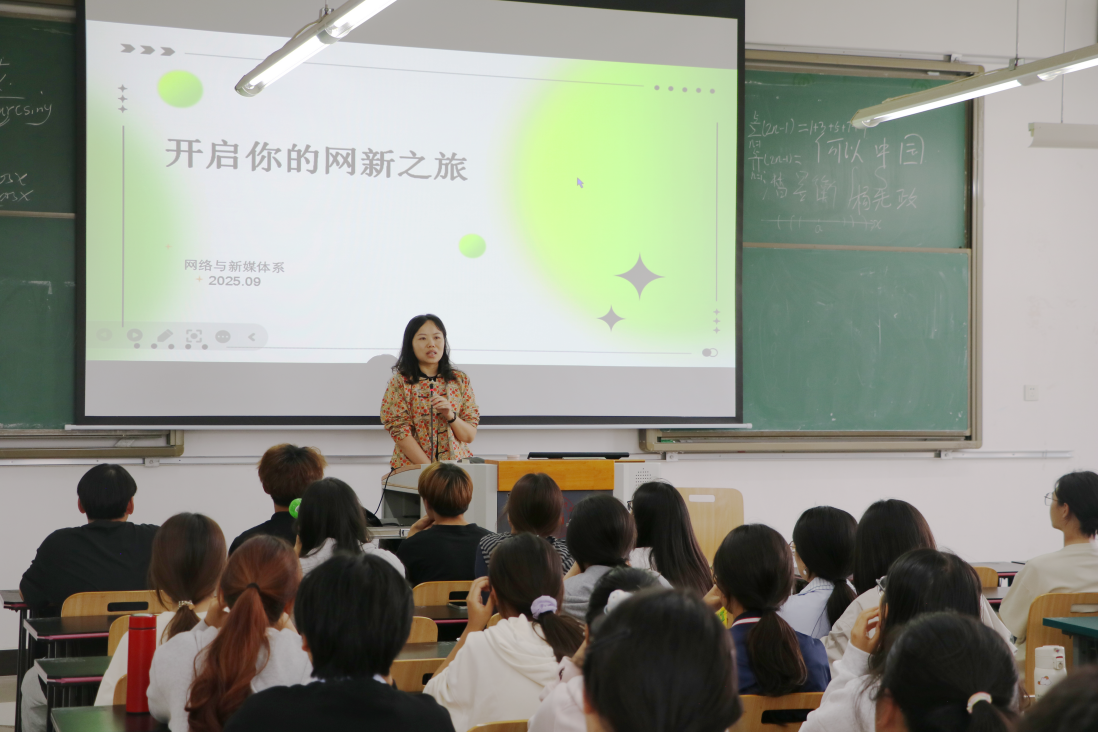 网络与新媒体系新生见面会在第一教学楼C120举行,多位专业教师在现场为2025级网络与新媒体学子答疑解惑,锚定专业目标。