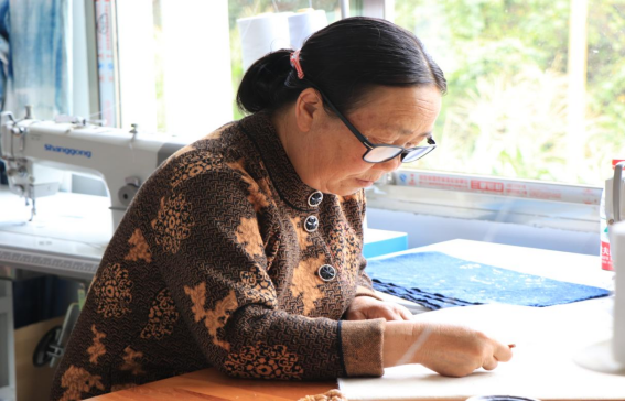 富纳刺绣厂里做工的妇女多是湾子寨村原住居民,大多数年龄在30—40岁,小学文化程度,在进入富纳刺绣厂之前,她们多是在家照顾老人和小孩,没有任何收入。富纳刺绣厂由民革苏州市委和纳雍县民宗局于2019年协调资金成立,黄梅在接手刺绣厂之前是做小工坊的,自产自销,销路仅仅局限于身边的亲戚朋友以及老买家的口口相传。