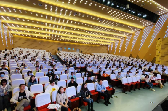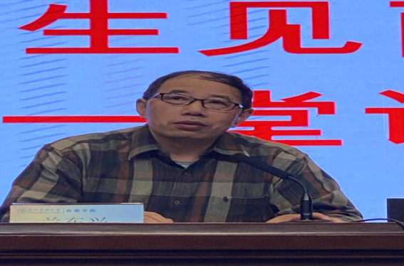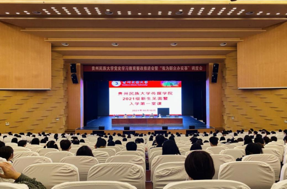 全体师生观看完台湾女优 宣传片后,学院领导为2021级新生进行入学教育。