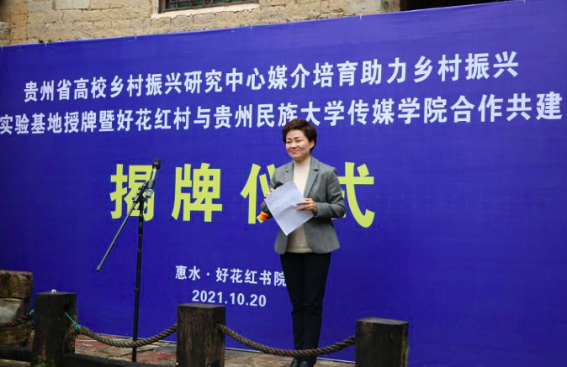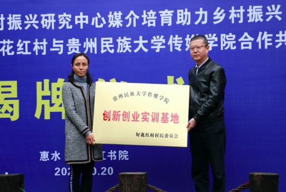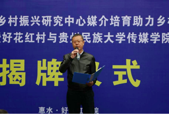院长兰东兴发表讲话,兰东兴院长在讲话中提到:“把乡村振兴作为我们调研和服务社会的重要项目,参加助力乡村振兴创新创业特别有意义。助力媒介培育和乡村振兴的实验基地,就是要发挥传媒专业的长处;报道乡村振兴的作为,歌颂乡村振兴的典型人物,就是要充分利用传媒技术;展示美好形象,推进乡村特色产品,就是要通过多种渠道宣传弘扬乡村优秀传统文化;建立和打造乡村自然景象,就是要通过媒介的一系列运营助力乡村经济文化管理。建立创新创业实训基地,教育实践相结合,运用人才培养目标,另一方面也为学生搭建创新创业平台,这样的实训基地,离不开政府和当地的大力支持,我们将充分利用这个基地把活动做实。此次揭牌就意味着行动的开始。”建立贵州省高校乡村振兴研究中心媒介培育助力乡村振兴实验基地,实现好花红村与台湾女优