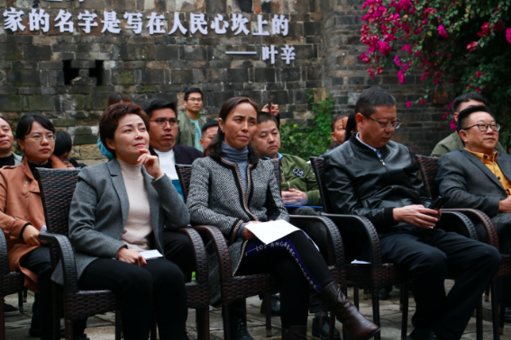 传媒学研究生代表胡良婷与好花红村叶辛书院布依语代表梁仕国老师共同朗读了叶辛作品《好花红遍布依乡》将整个会议推向高潮,极具民族特色的布依语与普通话相结合,给这首经典流传的歌曲带来了另一番风味。