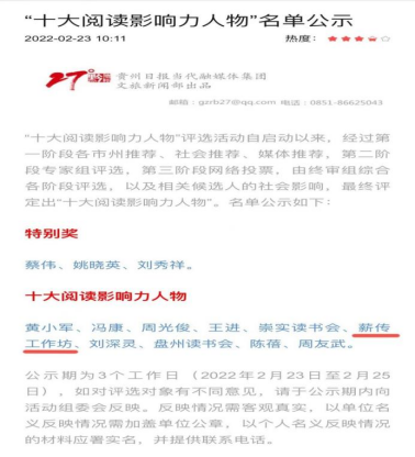 “十大阅读影响力人物”评选活动自启动以来,得到全省各地的大力支持。经过第一阶段各市州推荐、单位推荐、社会推荐、媒体推荐,在全省范围内评选出具有较高思想道德素养,热爱读书,学有所成,在民族精神塑造、民族文化传承、人文艺术研究创新方面有创造性贡献,并积极从事阅读推广工作,事迹突出、影响力广泛的个人或集体共70余人(个)。第二阶段专家组评选,共有30人参与到网络评选阶段。第三阶段网络投票,由终审组综合各阶段评选,以及相关候选人的社会影响,最终评定出“十大阅读影响力人物”。