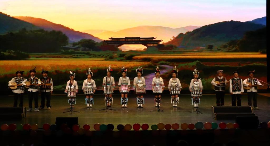 演出中,校艺术团成员身着绚丽多彩的贵州少数民族服饰登台,带来的歌舞节目《我在贵州等你》惊艳全场,以极具感染力的表演,将贵州的山水之美、人文之韵生动展现,而舞蹈《今天》则以青春洋溢的表演点燃全场,灵动的舞步和蓬勃的朝气,展现出当代青年的阳光风采。