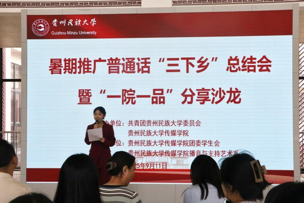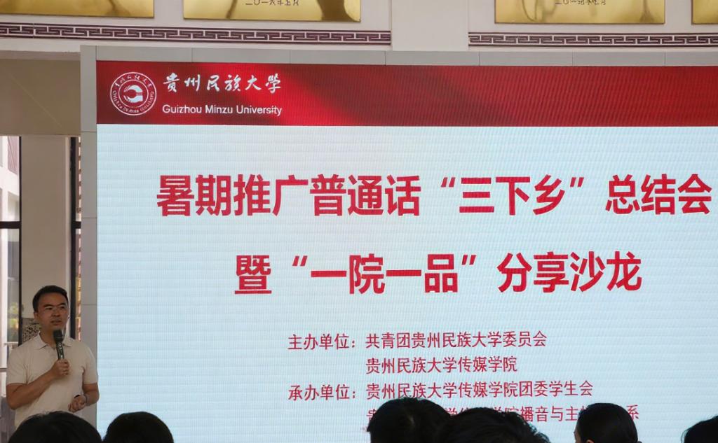 举办暑期推广普通话“三下乡”总结暨“一院一品”分享沙龙,分享总结暑期各“三下乡”实践队推普成果,交流成长经验,为语言助力乡村振兴、文化传播写下生动注脚。