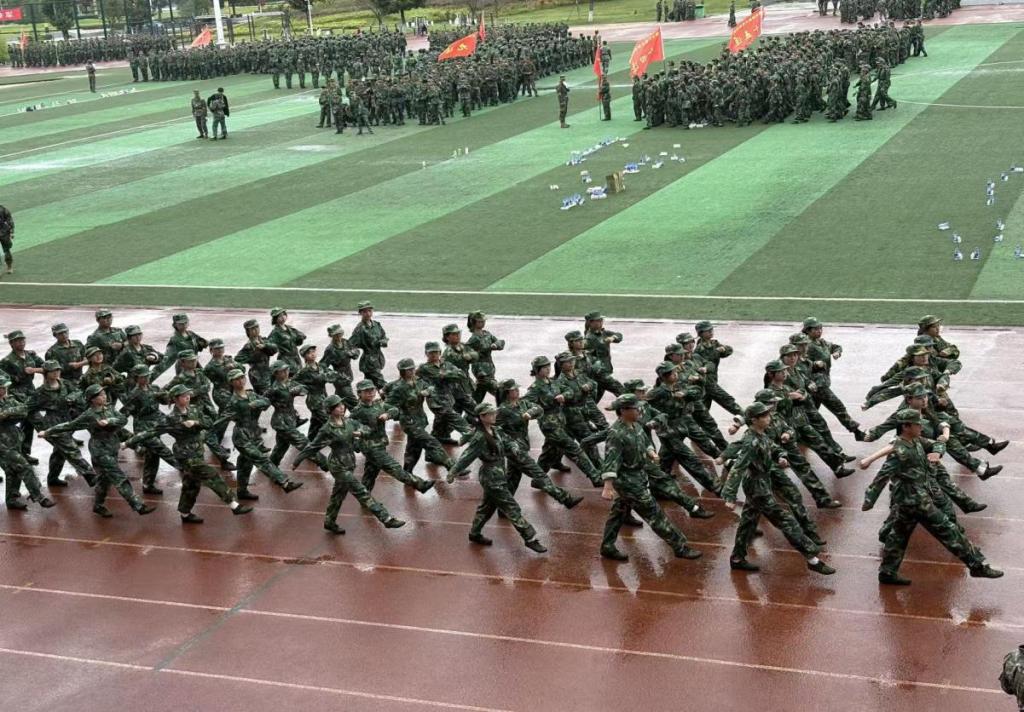 最后,在教官的指挥下学院2025级全体新生向学院领导及老师们展示了军训成果。大家迈着整齐昂扬的步伐在主席台前展示训练成果,得到了教官及学院老师们的一致赞扬。