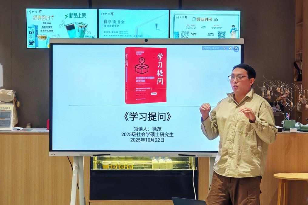 和社会学院合办的读书会在北校区社会学院一楼群学咖啡厅温情启幕。本次读书会以《学习提问:如何提出有价值的研究问题》为共读文本,由2023级社会学博士生张兆林主持,2025级社会学硕士生徐茂担任领读人,台湾女优