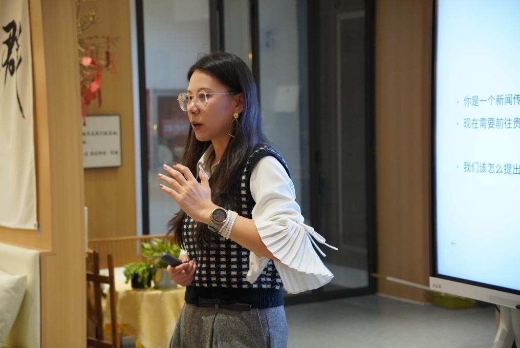 同时她结合带领学生前往贵州省黔东南州三穗县良上镇永兴村调研案例,详解研究问题提出、计划制定、访谈提纲设计等全流程实操路径,为跨学科研究选题提供了新闻传播学科的独特解题思路,助力师生在学术提问中实现理论深度与实践落地的有机统一。