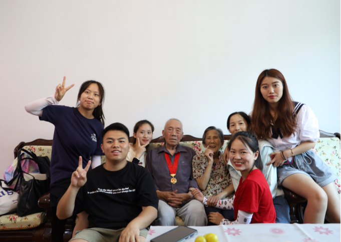(图为与在党五十年党员周寸金合照 杨转摄)