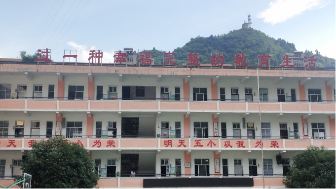(图为镇远县五小的标语“过一种幸福完整的教育生活” 刘丽摄)