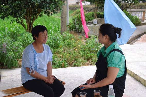 图为采访石阡县党史办公室主任丁浠(左)