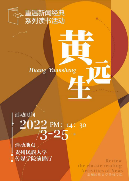 演播厅举行,这是本学期新闻系与传播系的系部活动之一。届时,读书分享人将选取黄远生新闻作品展开交流,与大家一起讨论阅读中的心得体会。