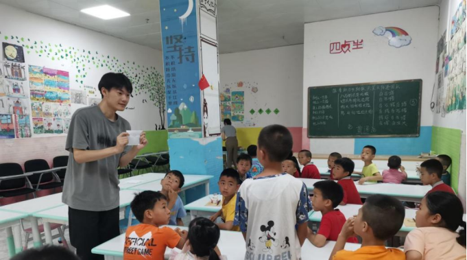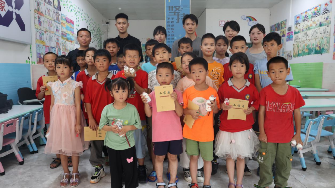 推普助力乡村振兴“薪火传递”团队运用游戏与教学相结合的方式进行普通话的推广。活动形式丰富有趣,有击鼓传花、比大小、传声筒、读字音及朗诵诗歌,小朋友们积极参与、欢欣踊跃。“薪火传递”团队还提前为小朋友们准备了学习用品,作为参与本次活动的奖品。