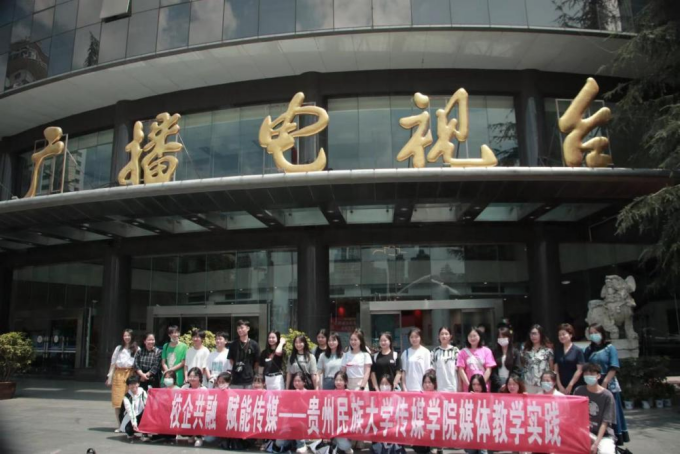 师生在贵州广播电视台门前合影