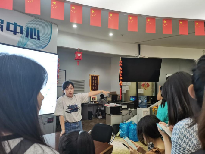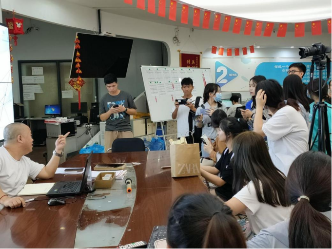 回到全媒体采编中心,编辑部的负责人胡老师和记者部的负责人邱老师分别给同学们介绍了全媒体采编中心办公室的主要部门,并鼓励同学们发挥自己的特长,提高自己的综合能力,注重多元化发展,对同学们以后的择业方向做出了建议。