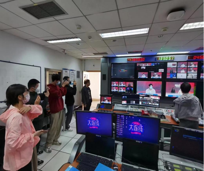 20级播音与主持艺术专业李思君、张宇、21级播音与主持艺术专业李雨欣,三名同学参与直播上镜,另有五名同学全程观摩学习。