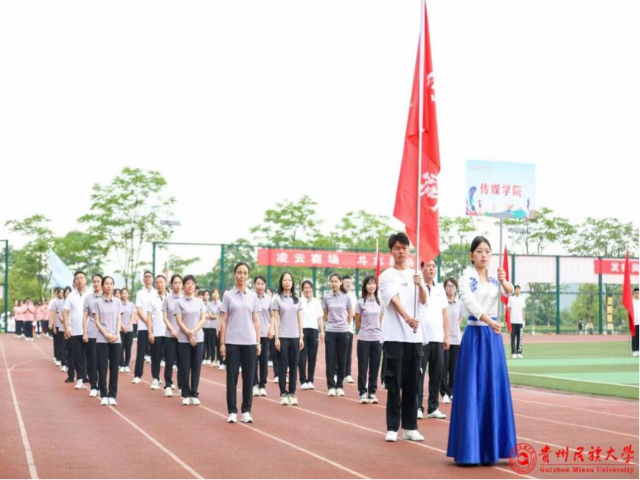师生代表方阵身着紫色和白色队服,神采奕奕地走过主席台。在旗手的引领下,方队整齐划一、气宇轩昂,青春洋溢的脸庞,锐意进取的劲头,彰显着传媒师生的自信与坚定。在表演环节,台湾女优