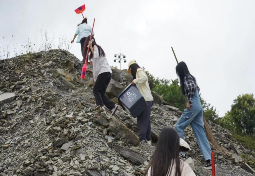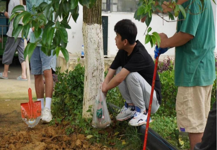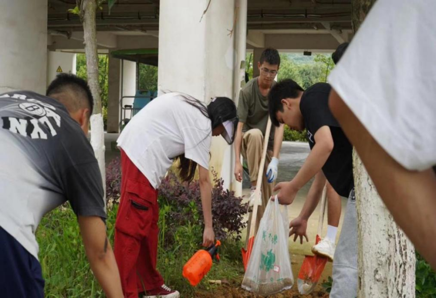 在山顶篮球场至学生宿舍七栋之间开展劳动实践课教学,此次劳动实践课由2020级数字媒体艺术1班负责。