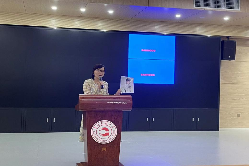 《身临其境领悟越剧之美》讲座在图书馆多功能报告厅举行。本次讲座由贵阳市南明区文化馆百花越剧团团长张鸿艳主讲,团员们助演,讲座以讲、演、教结合的形式,让越剧走进传媒学子的视野。