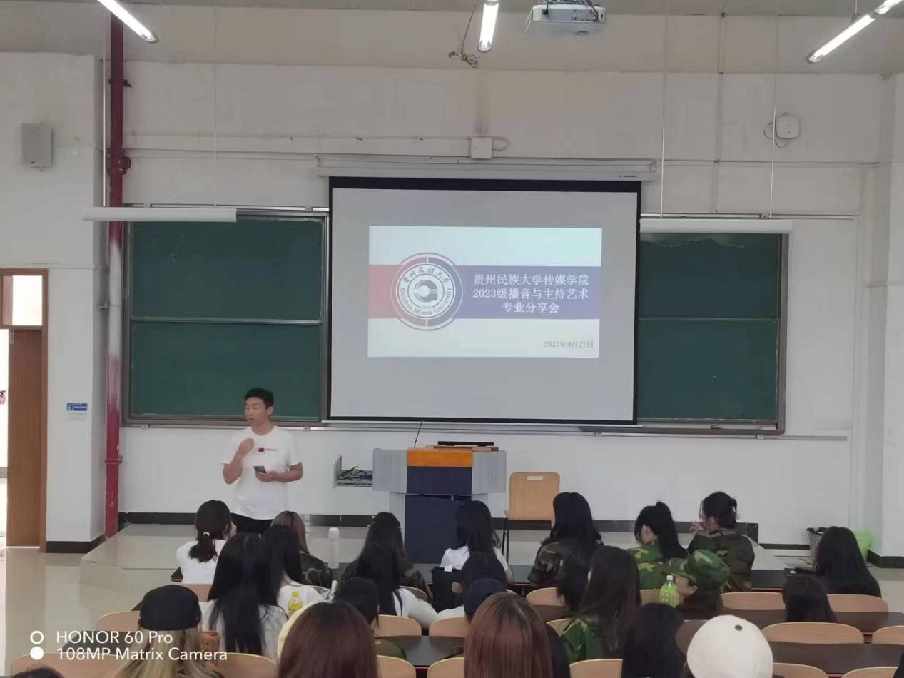 2021级学长李兴田和学姐李雨欣分享了自己入学以来的学习经历,并从参加比赛的经验、感受,为什么选择播音主持专业,想要成为什么样的主持人等方面进行了分享。