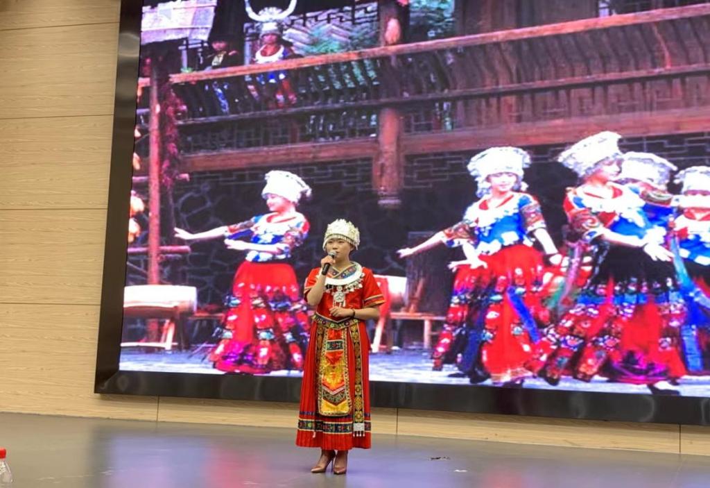刘小庆同学和非专业组21级文学院韦代江同学获得本次比赛金奖。刘小庆同学身着苗族传统服饰,从苗族饰品谈到衣食住行,生动呈现了苗族文化的独特魅力。韦代江同学则从国家级非物质文化遗产——打铁花入手,详实的叙述加上丰富的图片展示,巧妙衔接有趣的故事,展现文化艺术与乡村振兴的双向奔赴,让现场观众沉浸式体验了一场贵州孟关的“赶场”之旅。