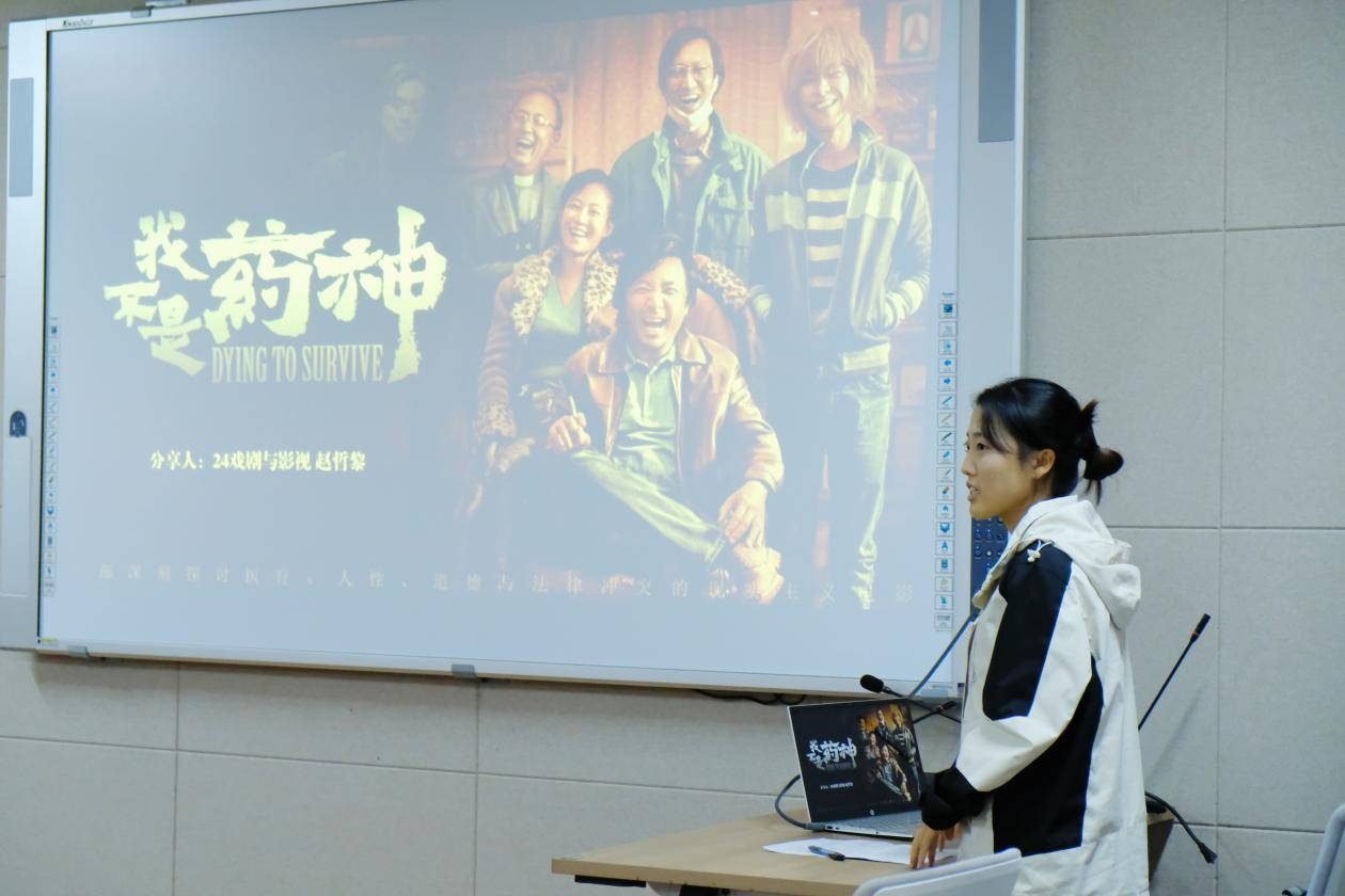 在观影会的交流中,六位特邀分享人各自阐述了不同类型经典影片的深刻内涵。来自2024级戏剧与影视专业的赵哲黎同学就影片《我不是药神》进行了详尽剖析,她深刻探讨了该作品如何通过独特的叙事视角,深刻揭示了社会生活的真实面貌,并进一步阐述了作为传媒从业者,应如何运用镜头语言来传递深切的人文关怀与社会责任感。