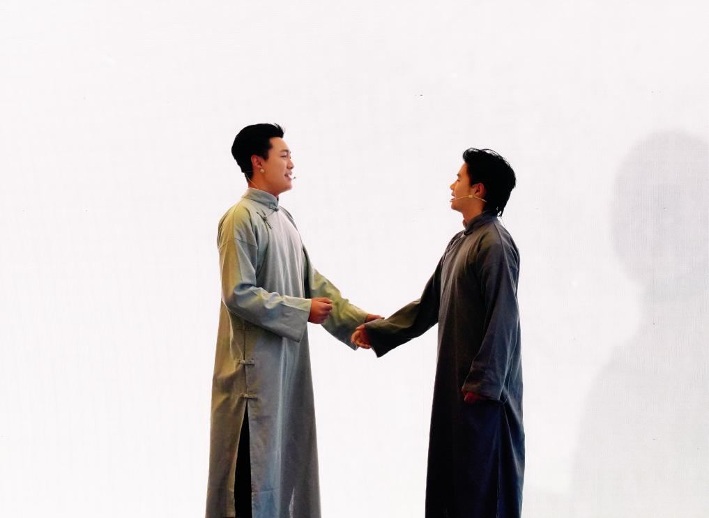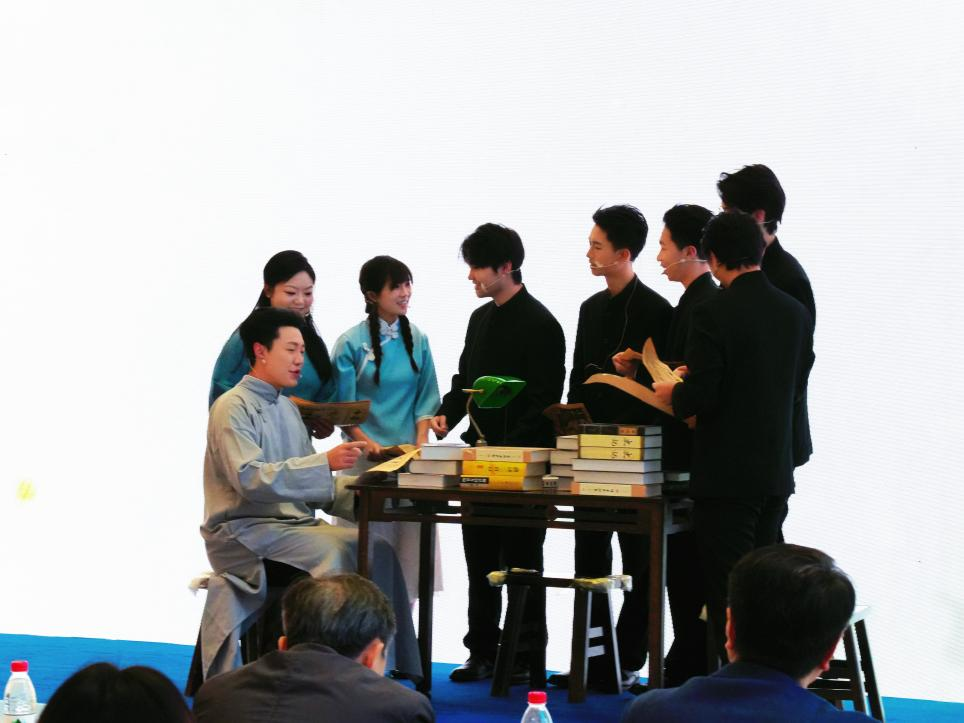 演出前,导演宋波登台介绍创作初衷,强调剧目旨在通过谢六逸先生的故事,让新闻界同仁感受前辈对事业的执着与热爱。《逸梦黔行》以谢六逸先生生平为脉络,精炼呈现其关键人生节点与直至生命尾声仍心系新闻教育与国家未来的精神,生动诠释“新闻即史、求真务实”的行业信念。现场更邀请部分观众沉浸式参与剧情,打破舞台与观众席的界限。