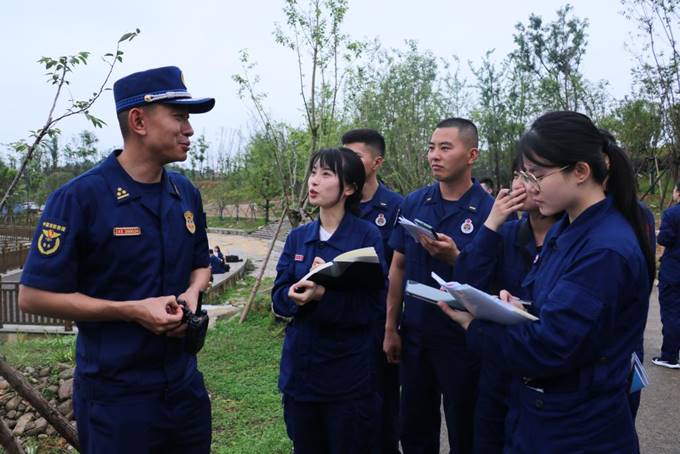 管倩老师带队的新闻采编小组联合张勇老师带队的实用摄影小组,共同完成今日演练的图文新闻稿。管倩老师带队的学员,需要完成的任务主要有两个,第一是向蒋健站长了解此次演练的基本信息,第二学员要保持敏锐的观察力,留意现场具有现场感的东西,以此获取新闻信息;张勇老师观察了当时的天气状况,指导学员首先解决器材照相机参数的设置,建议学员们在现场救援过程中抓拍最有代表性的瞬间。