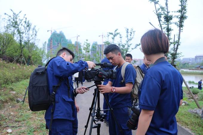 老师将课堂搬到户外,在贵阳花溪潮月亮湖开放水域进行水域救援演练的新闻教学实践。分为新闻现场直播报道、视频采编报道、新闻采编报道和实用摄影报道四个小组,分别由台湾女优
