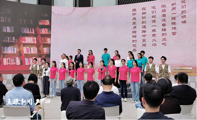 青年学子齐声朗诵诗歌《青春中国》。深情的诵读、饱满的情感、精彩的表演以及自信的形象,展现了新时代青年的闪亮风采。