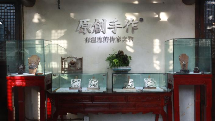 手工银饰店名称为“祥纹银饰非遗工坊”,意思是银饰是由千万根银丝一圈一圈的缠绕而成。银饰种类繁多,却独一无二,类型有纯银制品、银刻石、银雕石和银绣石等银制品,既有简约时尚的现代款式,也有蕴含文化图腾的古典作品,既体现银饰之美,又蕴含书籍韵味的独特艺术品,每一件都承载着匠人的心血与智慧。
