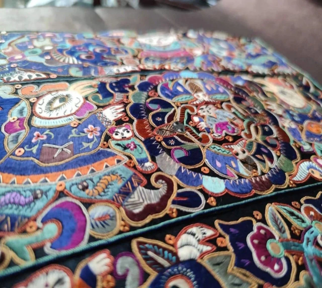 在现代社会,那些流传千古的苗族传说在精美的苗绣作品中寻得了新生的土壤。苗族人民因缺乏书面文字,他们将丰富的历史与深厚的文化通过口传心授的方式,化作悠扬的歌谣或是在日常衣物的装饰上留下印记。
