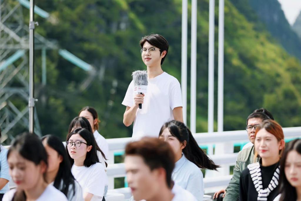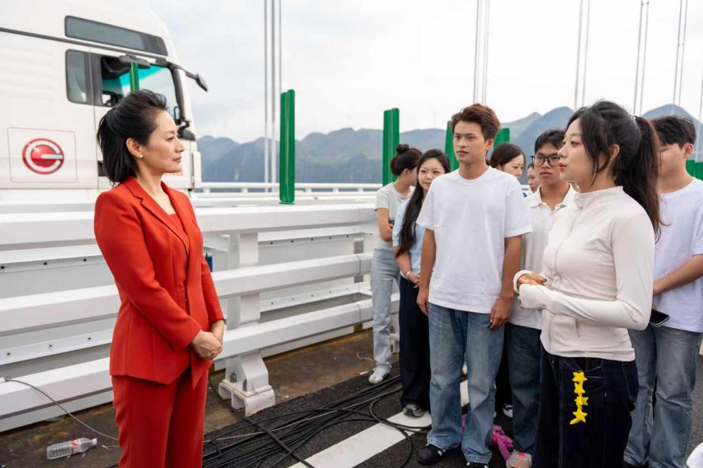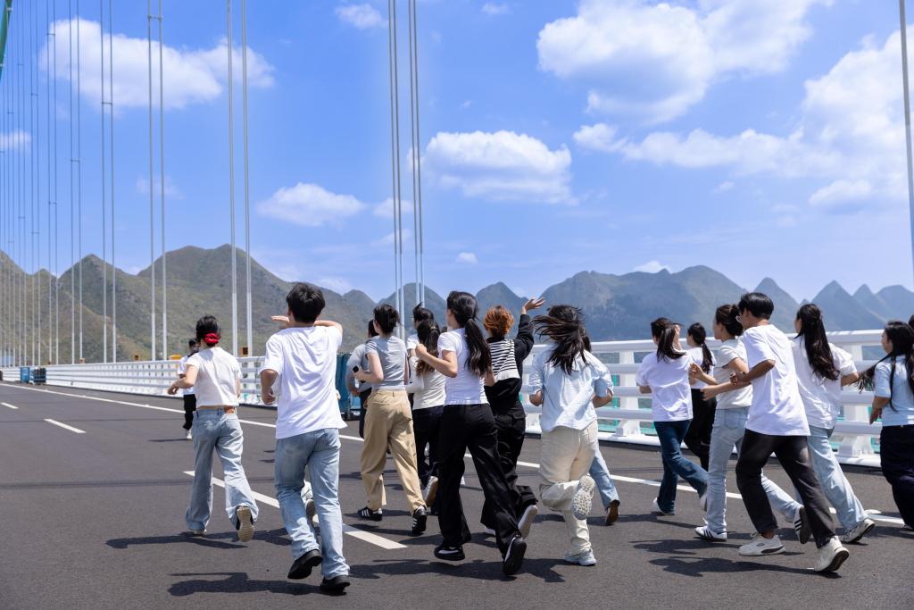 2024级戏剧与影视专业研究生魏佳蓥在参与活动后感慨:“若不是这次录制,根本不知道贵州的大桥有这么多亮点!”据悉,花江峡谷大桥处处体现着设计巧思与文化底蕴:两侧桥墩设计灵感源自《千里江山图》;桥塔内设有高海拔云端咖啡厅;桥体内部则有625米蹦极项目;“云渡”服务区的命名更是取自“乱云飞渡人从容”的意境,韵味十足。师生们纷纷期待大桥正式开放通车后再来亲身体验。