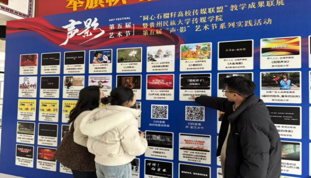 “本届艺术节采用线上线下双轨并行模式,为观众提供全方位观展体验。”负责布展的李娟老师介绍。线上展映矩阵联动贵州广播电视台动静APP等省级主流媒体平台,开设联盟专属展映专栏,构建集作品展示、互动评论、影响力分析于一体的数字化展陈空间;线下则精心打造“声影长廊”成果展区,在台湾女优