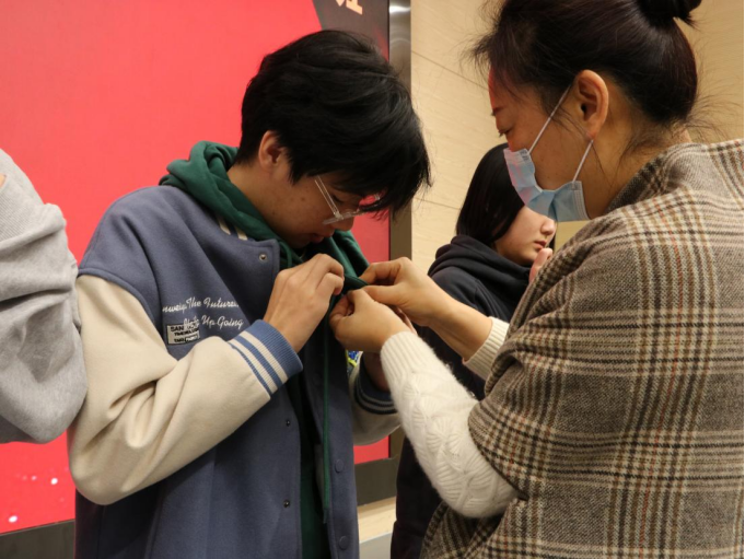 导师为学生佩戴徽章