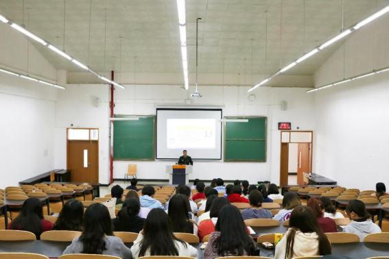 赵永伦教授结合当今中国的国际形势,围绕习近平强军思想的时代依据、习近平强军思想的科学体系、坚定不移地把习近平强军思想全面贯彻到国防和军队现代化各领域全过程三个方面,阐述习近平强军思想,用大量的图片和振奋人心的故事,向同学们讲述习近平强军思想在国防和军队建设中发挥的重要作用和取得的伟大成就。