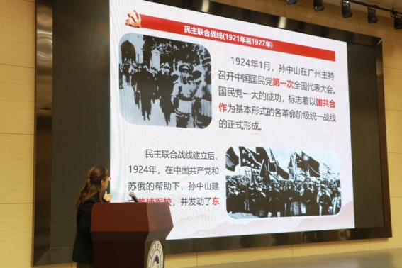 刘如梅副教授在专题辅导讲座中,按照中国共产党的百年历史脉络,回顾了党的百年统一战线史,围绕国民革命联合战线、工农民主统一战线、抗日民族统一战线、人民民主统一战线、爱国统一战线展开讲解,回答了“中国共产党为什么要建立并不断巩固和扩大统一战线”“统一战线是怎样历经曲折而发展起来的”“统一战线在各个历史时期发挥了怎样的作用”等问题,全面展示了中国共产党为了完成不同历史时期的历史使命建立统一战线、发挥统一战线法宝优势作用的情况。