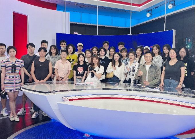 除了面对面现场交流,刘郁副主任一行还带领同学们来到节目演播中心,感受贵州卫视节目制作氛围和演播室环境。在这里,同学们充分感受到了主播台的魅力和自己肩上的责任。同学们表示,零距离接触到一线,才真切明白自己与主流媒体播音员主持人的差距在哪里,今后努力的方向在哪里,进步的空间有多大……也正是这样的实践教学,让实习前的同学们紧绷神经做好面临真正考验的准备。