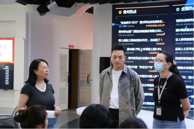 在现场,按照疫情防控要求,经工作人员扫码测温后进入电视台大楼。在贵州台全媒体台湾女优采编部副主任刘郁的热情引领下,参观了贵州广播电视台广电长廊、4K超高清演播中心、融媒体中心等地,深入了解贵州广播电视台的发展历程、节目生产和制作流程等情况。