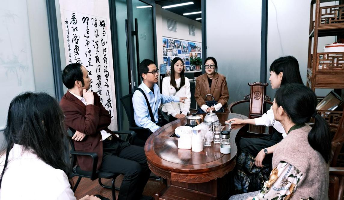 新闻学国家级一流专业负责人刘祥平教授及欧继花副教授率队前往贵州省新经济品牌融媒体中心开展访企拓岗与实习基地共建等交流活动。贵州省新经济品牌融媒体中心总顾问、知名音乐创作人及电视文艺策划、撰稿人张超和贵州省新经济品牌融媒体中心主任齐娇热情接待。